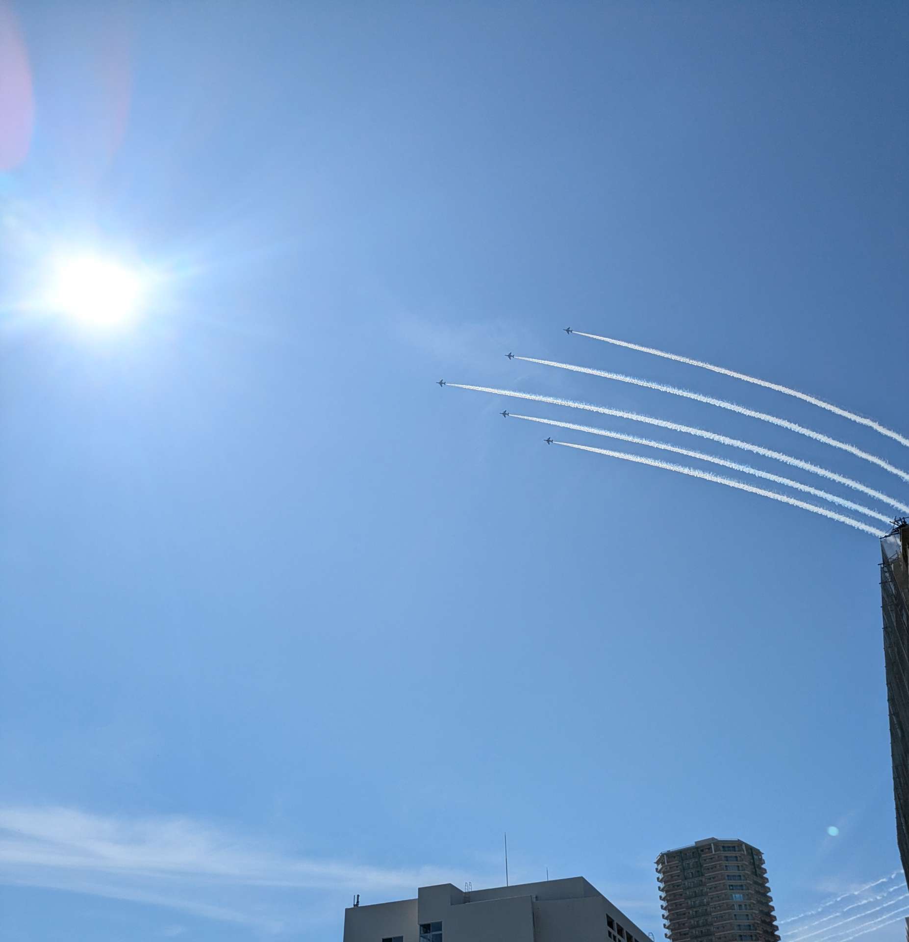 昨日、突然思い立ち体調の悪い中、2時頃から慌てて南港へ向かい、万博会場の対岸からブルーインパルス見てきました😄