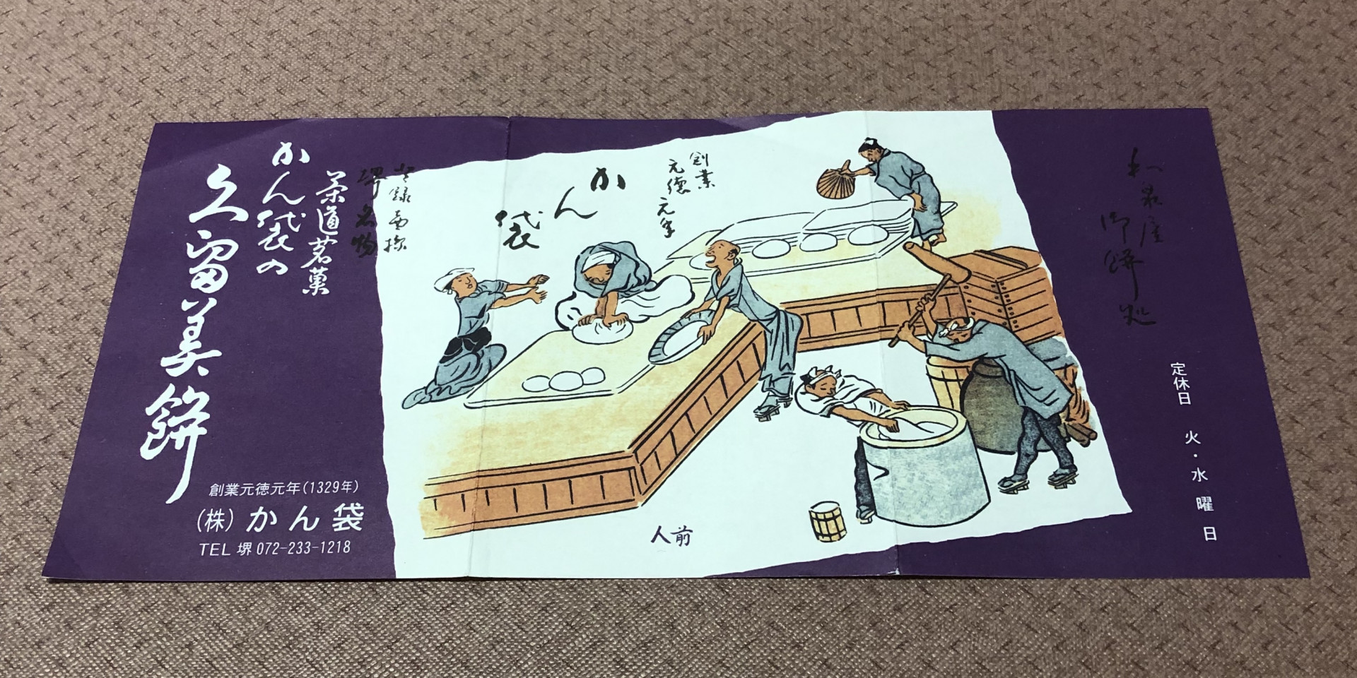 先週の土曜、午前の施術が終了後院長先生に堺市の和菓子の老舗「かん袋」のくるみ餅を食べに連れて行っていただきました。