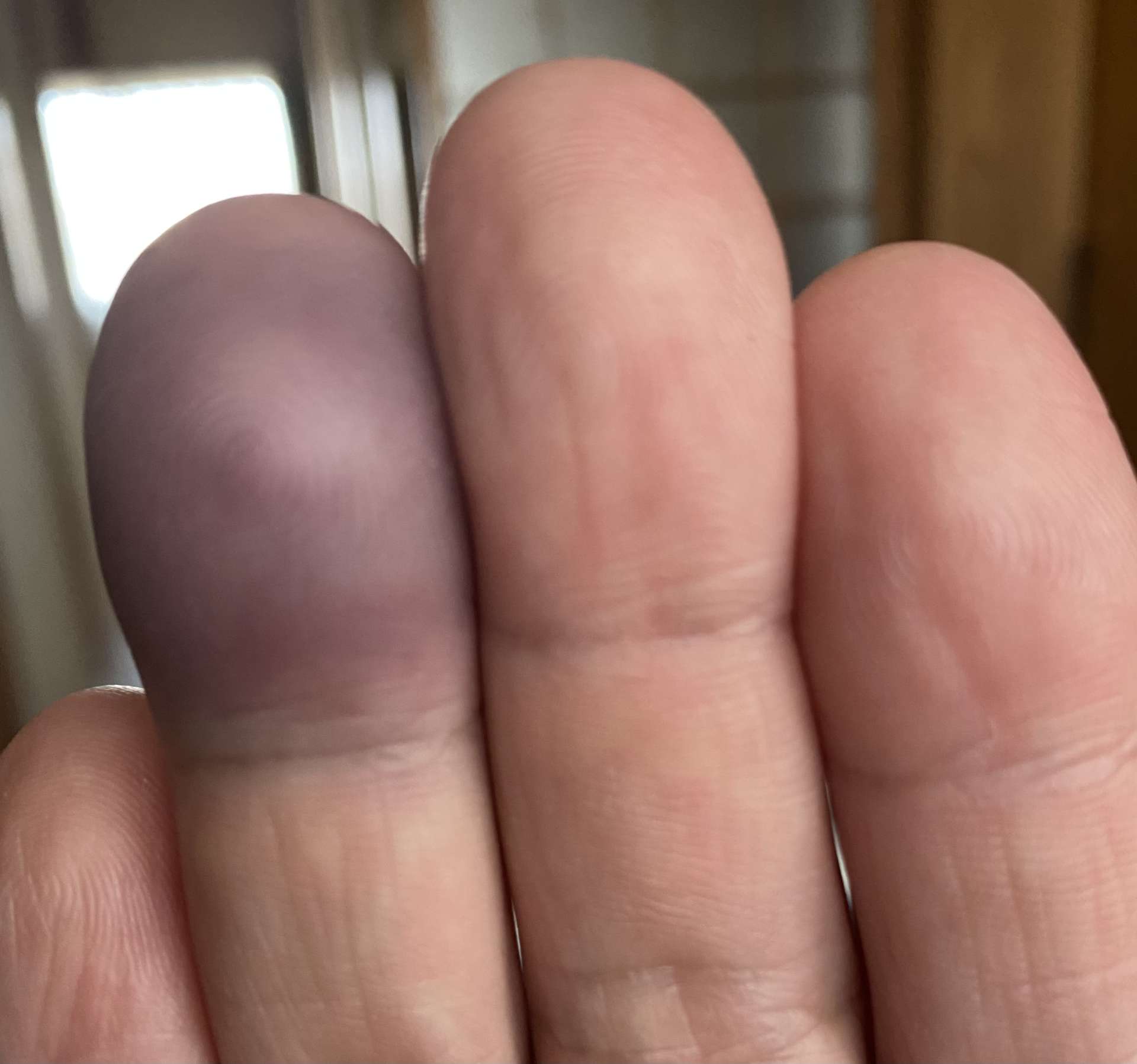 帰って夕方くらいになると薬指がパンパンに腫れ上がって色も紫色に変色。