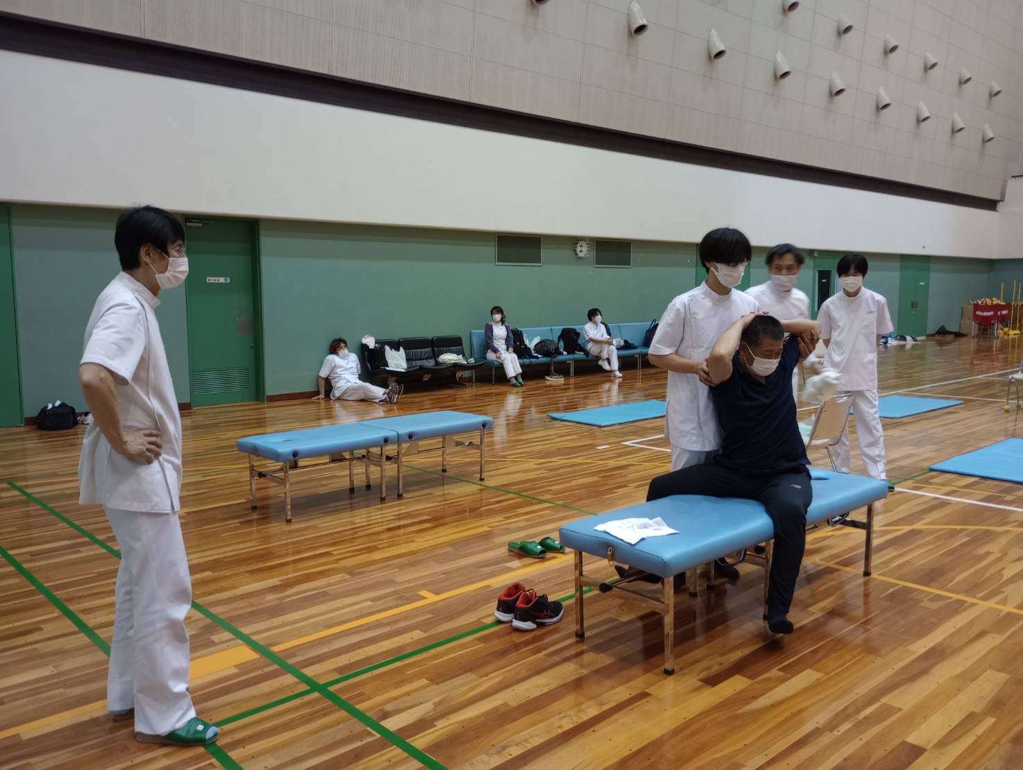 そんな中での施術という事で初めは生徒さんも緊張気味で普段練習している事が出来ずにいましたが、人数をこなす事で手際も良くなり技術も上達し、選手の方からも「めっちゃ楽になった!」という言葉をいただき生徒さん達も自信になったと思います。