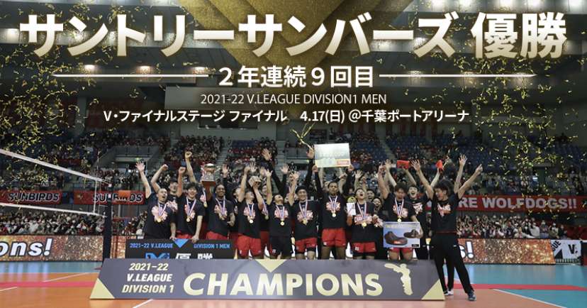 サントリーさんのチーム名はサントリーサンバーズといい、2021/22シーズンVリーグを優勝され昨シーズンから2年連続9回目のチャンピオンに輝いた強豪チームです。
