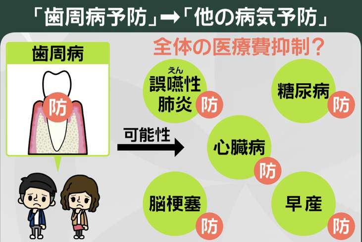 歯を健康に保つ事で、他の病気の誘発を抑えて、医療費全体を抑制する目的だそうです。