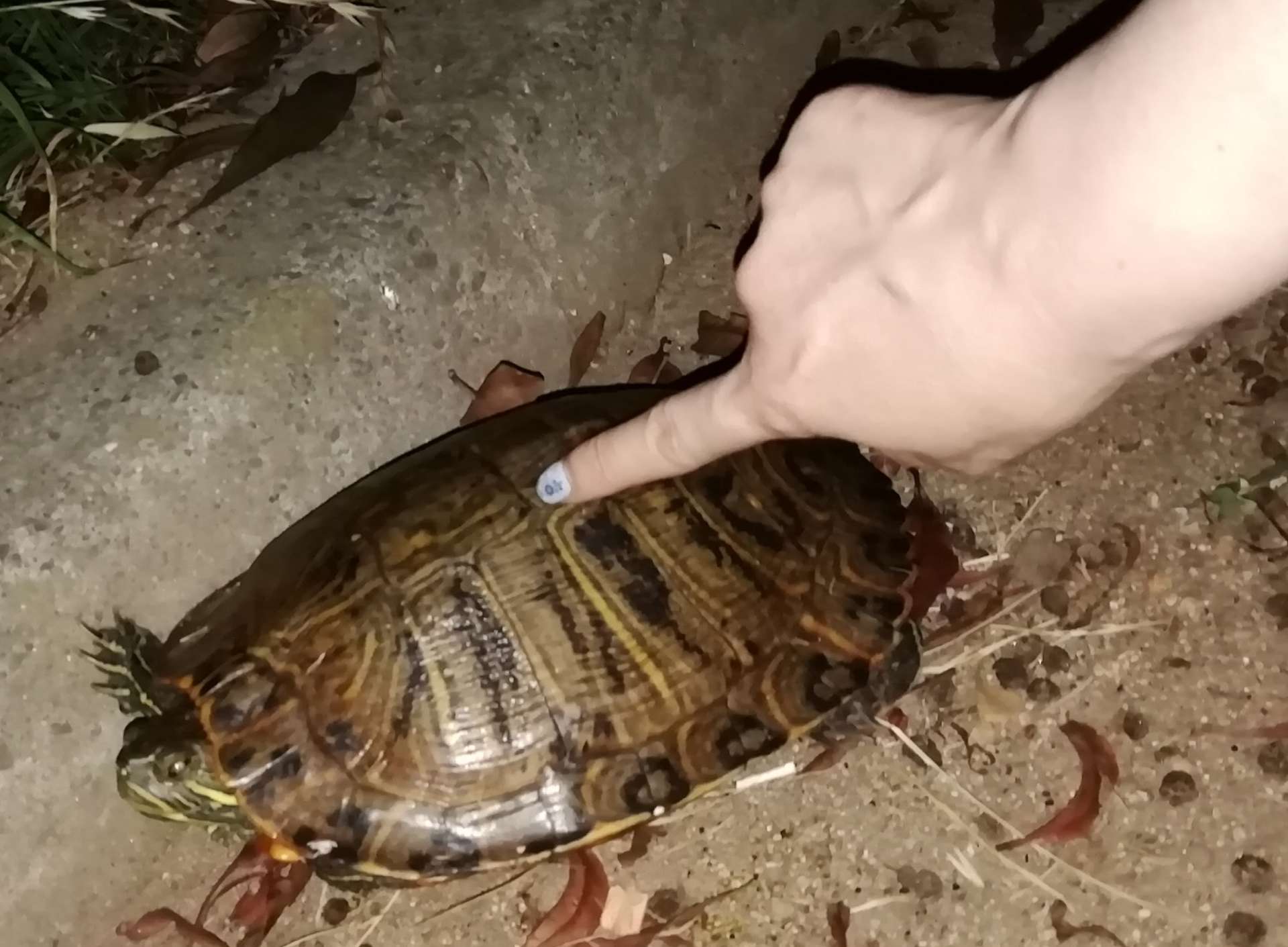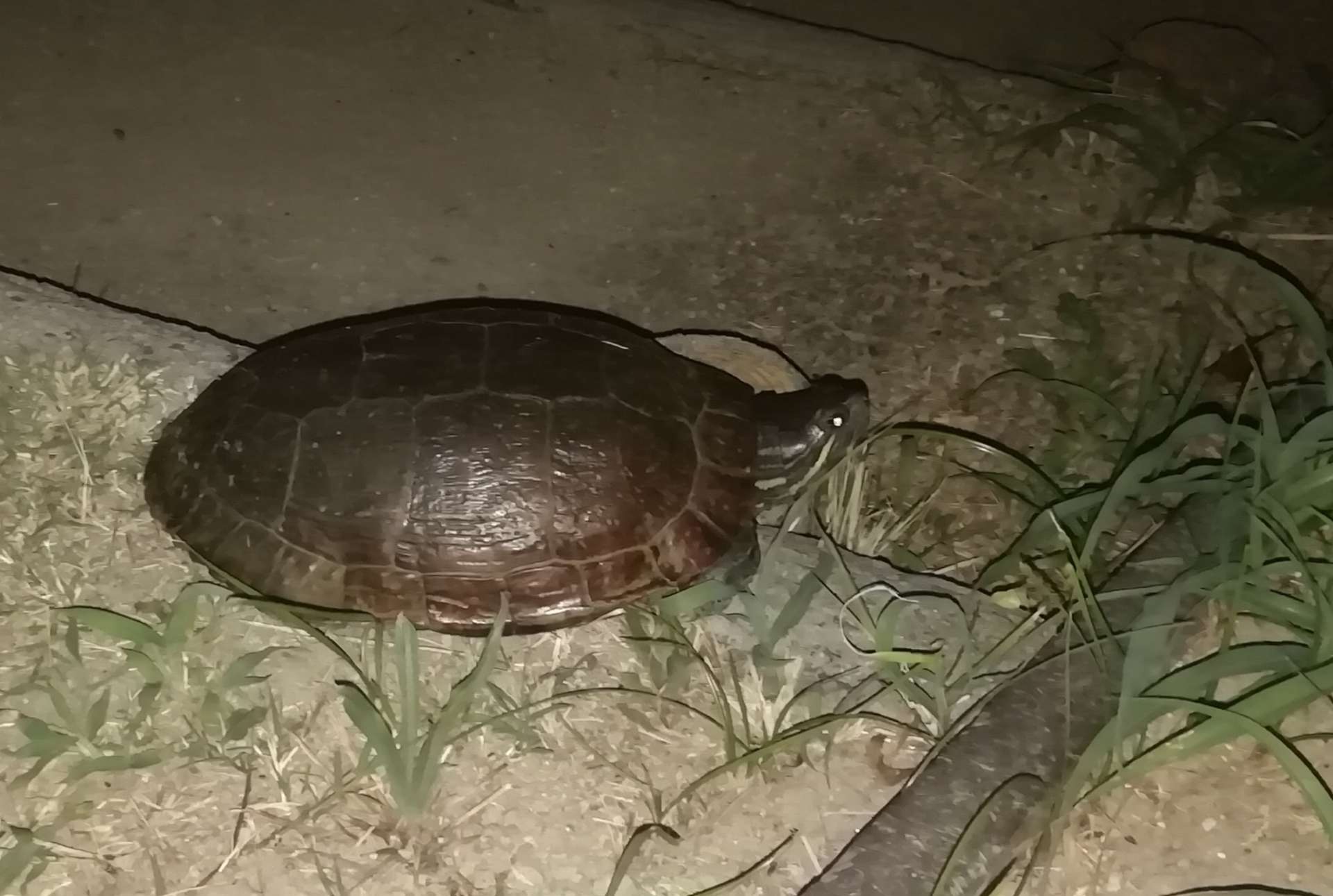 どうやら、かめ吉(命名した😤)は、夜な夜な池から脱走して公園内の散歩を楽しんでいるようです☺️