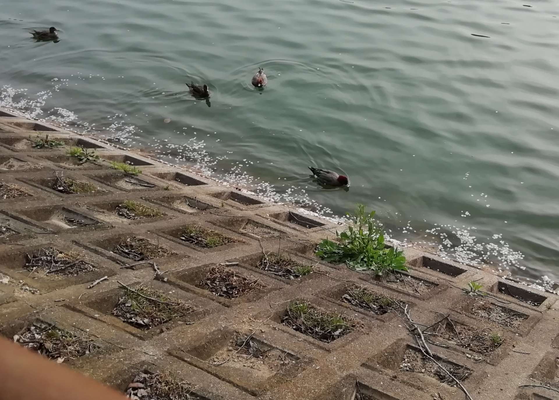 しばらく、ダルマさんが転んだ状態(私が鬼)を続けてると、かめ吉は、少〜しづつ お池に近付いて行き、最後のダルマさんが転んだで見てないふりをした瞬間、すごい早さで池の塀をくぐり抜け、土手を降りようとしていました。