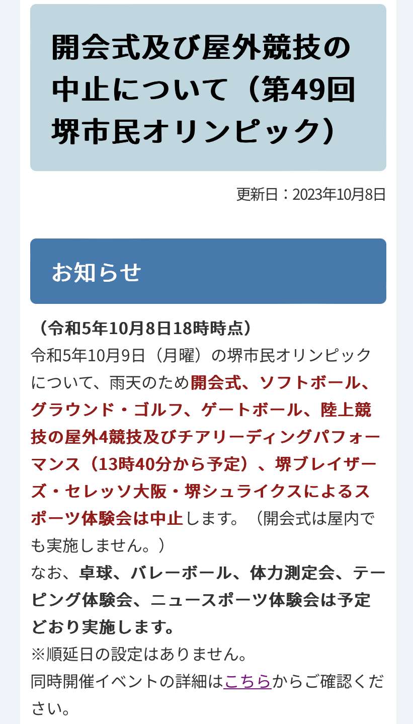事前の市民オリンピックの説明会では雨天時の場合は体育館で開会式は行うとの事でしたが、それも中止…